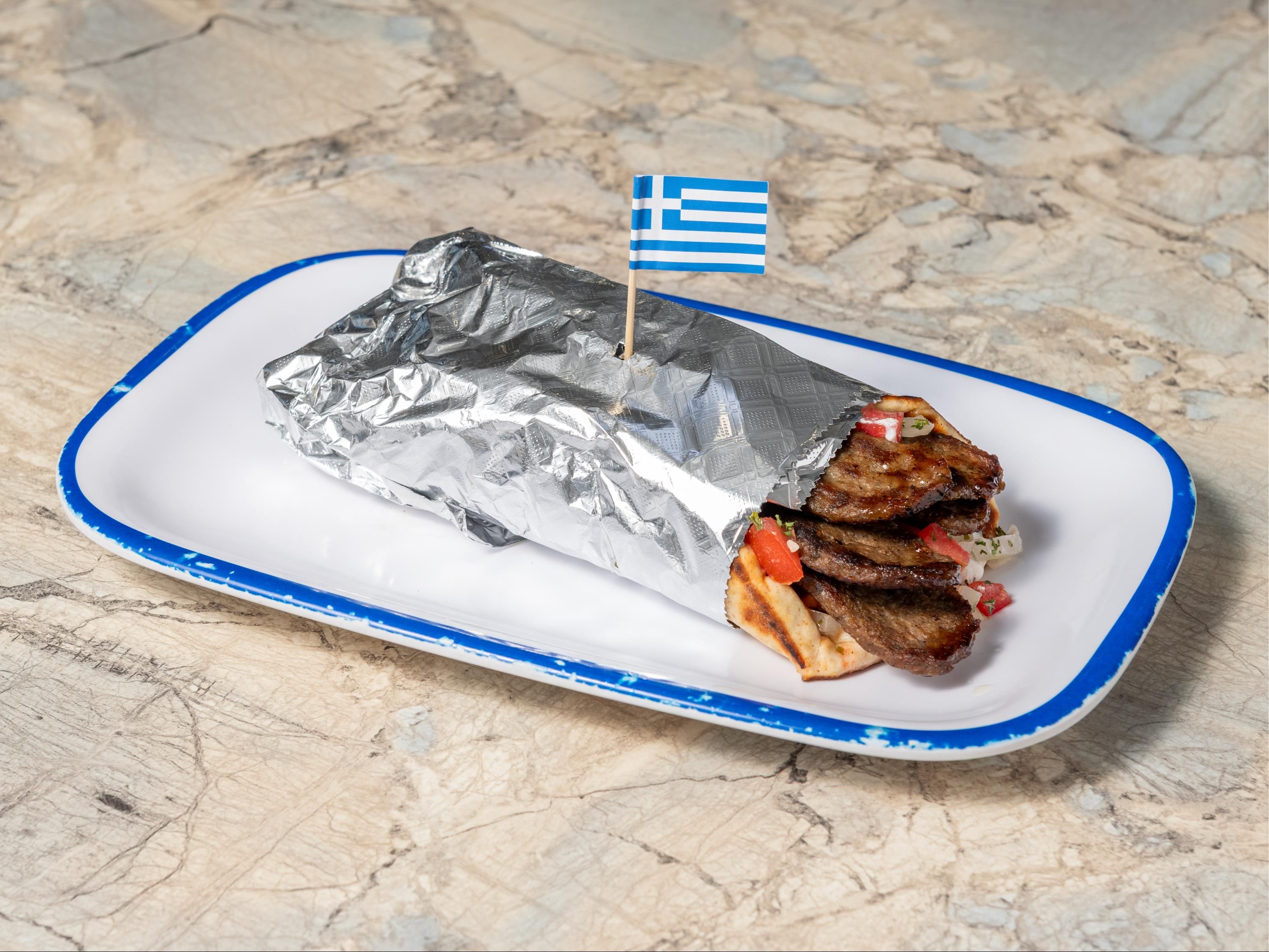 Combination of beef and lamb, wrapped in grilled pita. tomatoes, onions & tzatziki.