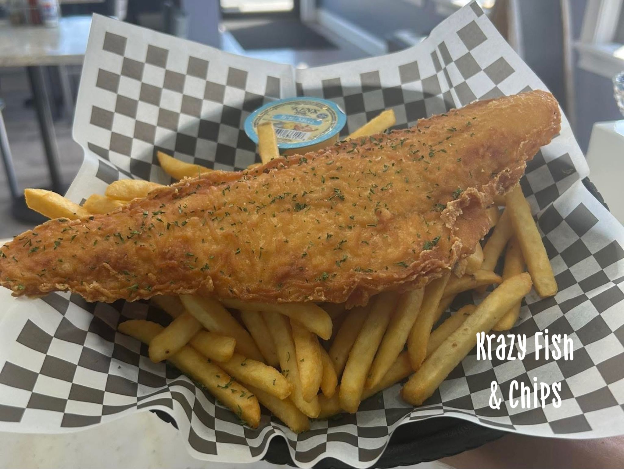 Grilled mahi mahi, lettuce, tomatoes & onions on a hawaiian king bun. served with fries. fries can be substituted for an additional charge.