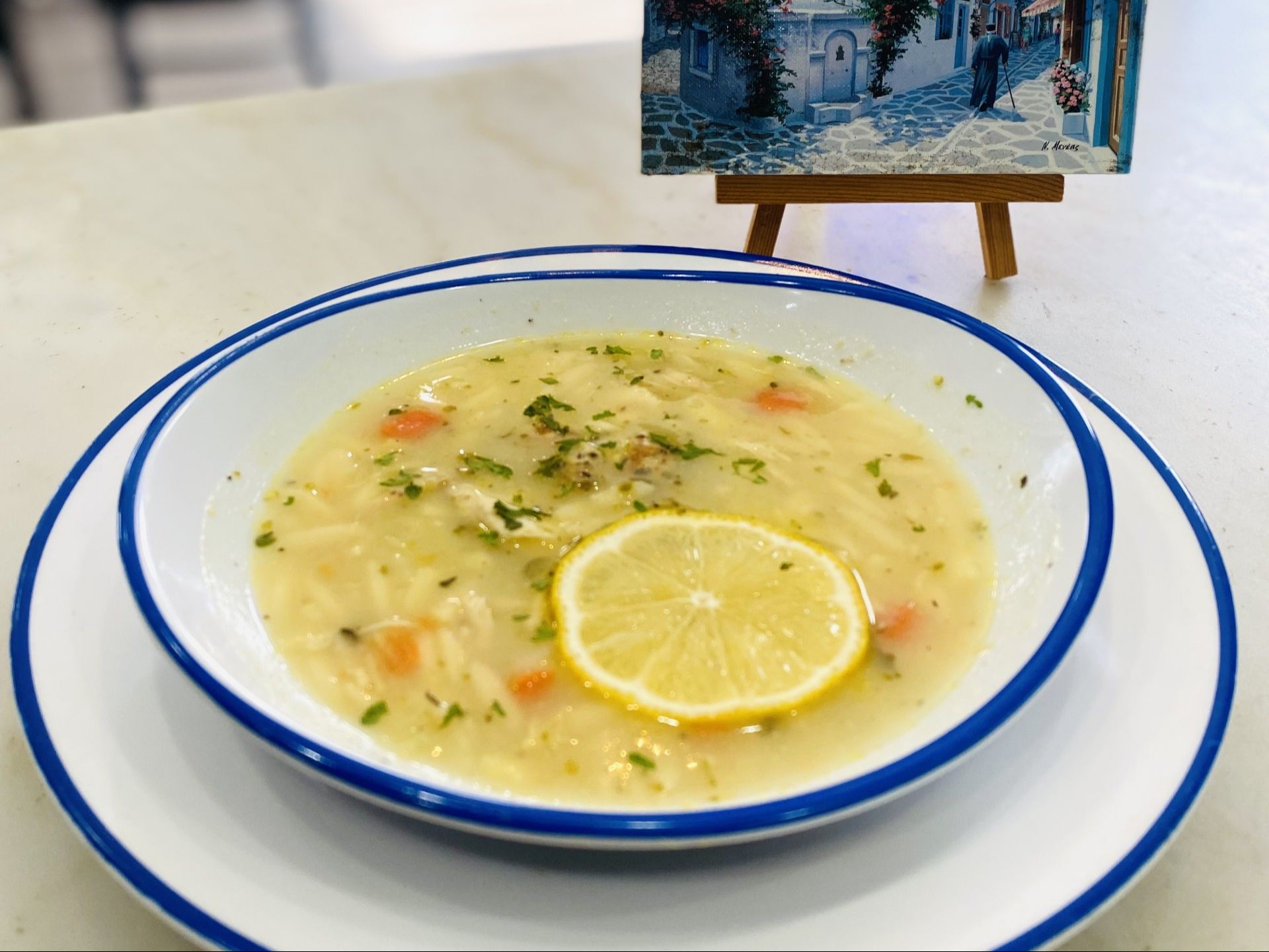 Chicken lemon orzo soup.